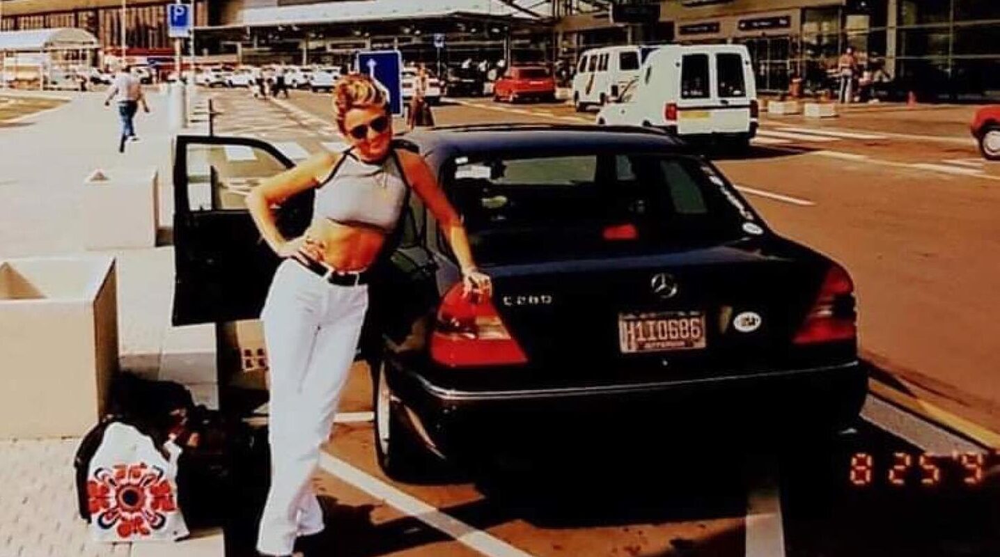 Letiště Ruzyně, Praha, srpen 1997. Máma Marca De Nicci a její MERCEDES-BENZ C280 W202, který si dovezla z USA (Colorado) vyzvedává svého manžela. Vozidlo jezdilo mezi lety 1995 – 2006 v Brně.
