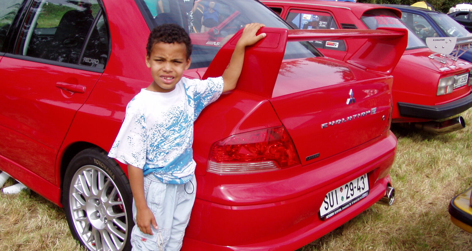 Já s Mitsubishi EVO 7 v roce 2005 na tuning srazu v Bludově. Zde je patrné, že plamen mé lásky k autům hořel již naplno.