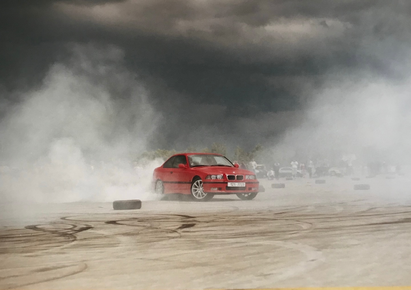 BMW M3 (E36) řádí na tuning akci v Hradci Králové, rok 2002.