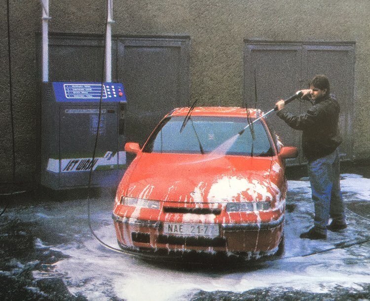?OPEL CALIBRA v samoobslužné automyčce JET WASH, 90. léta. Tato Calibra byla registrována v okrese Náchod. ?