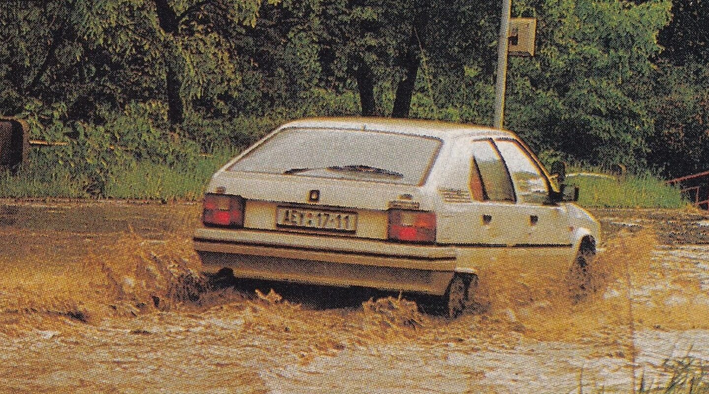 Tematicky dávám do příspěvku fotku BX, projíždějící vodou, Snímek vznikl v pozdním sobotním odpoledni, 18. května roku 1996, kdy nastala několikaminutová průtrž mračen, při níž byla zaplavena dolní část Podbělohorské ulice na Praze 5.