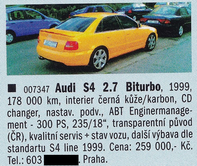 Z dobové inzerce INZERCE: Osm pokladů (2008) 5. 11. 2021 Patricio M. 2005 - 2008 A opět je tu vaše oblíbená sekce „Z DOBOVÉ INZERCE“ . Těchto osm krasavců bylo na prodej v roce 2008! Zdroj: Tuning Magazine 11/2008