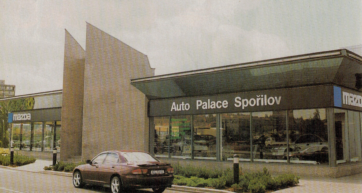 AUTO PALACE SPOŘILOV V ROCE 1996! „Skupina Auto Palace zahájila svou činnost v České republice v roce 1991 jako importér a prodejce automobilů značky Mazda a dnes patří mezi tři nejvýznamnější automobilové dealery na trhu. Za dobu působení na českém a slovenském trhu prodala skupina téměř 170 tisíc vozů a je jedničkou v prodejích značek Ford, Hyundai, Mazda, Mitsubishi, BMW a Mini.“