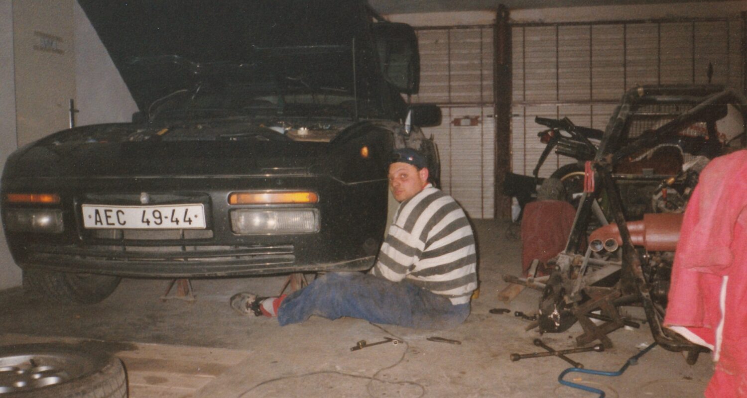 Servis PORSCHE 944, které bylo registrováno v Praze. Fotografie vznikla na přelomu let 1993/94.
