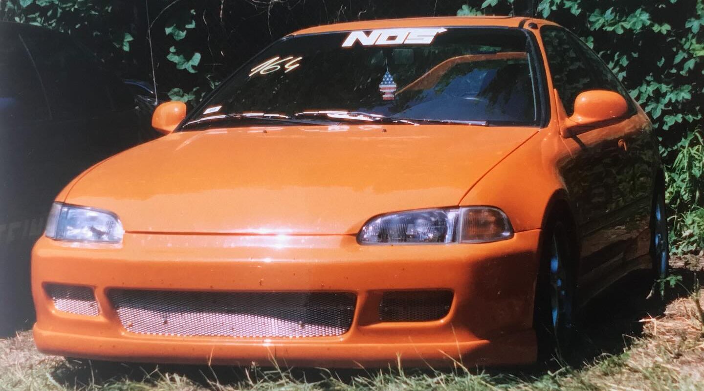 Tento – původně – šedý CIVIC v provedení coupé měl pod kapotou motor D16 a v 0. letech prošel tuningem, přičemž byla změněna barva.