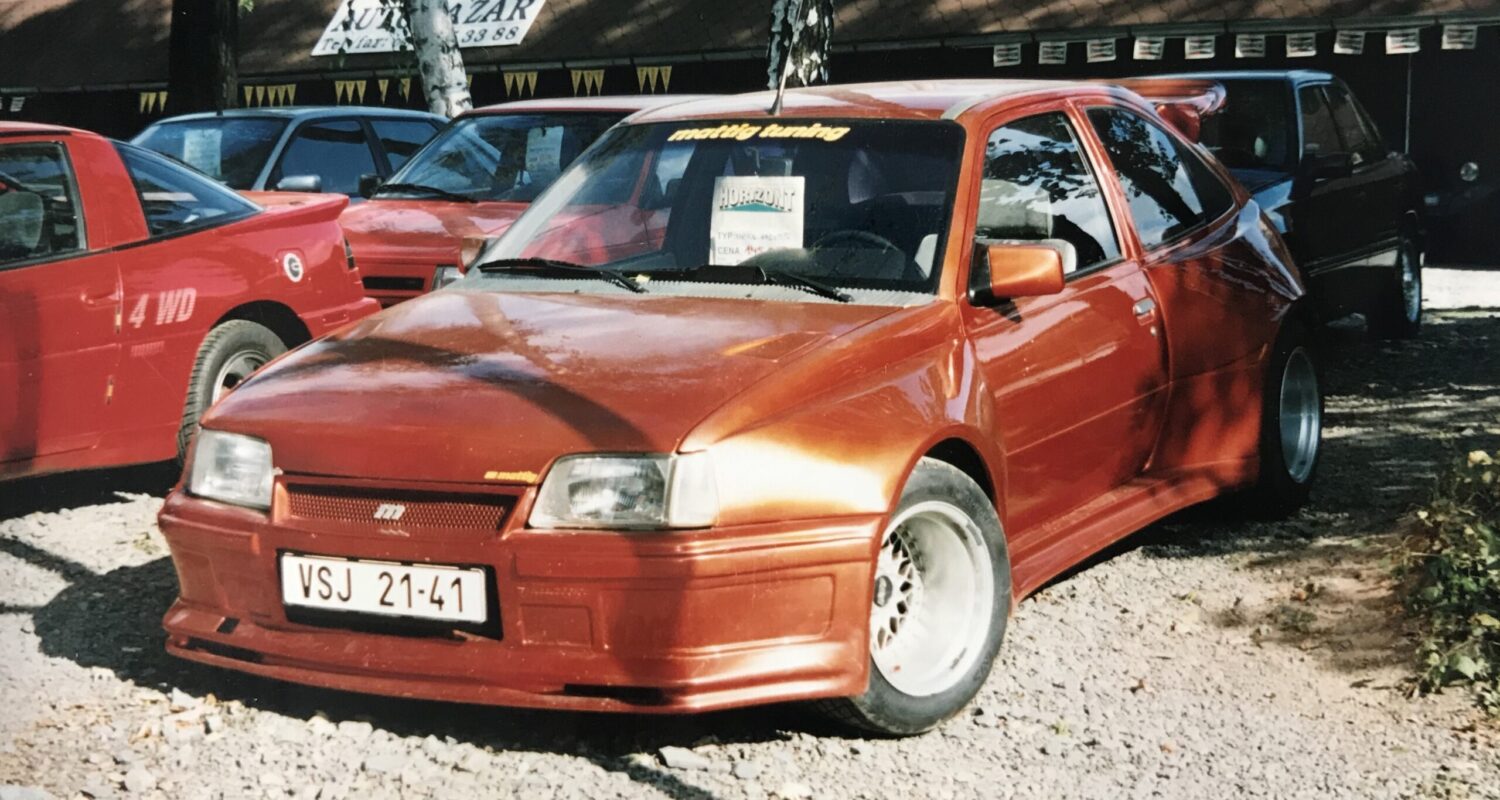 Toto je má srdcová záležitost. Pocházím ze Šumperka a tento Kadett E GSi mě provázel dlouhou částí mého dětství. Když jsem byl malý, bydleli jsme v polyfunkčním domě, ve kterém byl i obchod s auto a tuningovými díly. V dobách největší slávy počítačové hry Need for Speed Underground byl pro mě tento Kadett naprosto nepřehlédnutelný. Jako malý kluk jsem chodíval rád do tohoto obchodu ve volném čase a s majitelem jsem se také seznámil. Pan Petr jezdil s tímto vozem snad na všechny tuningové akce nejen v blízkém okolí. Objevoval se i na tuningu v Brně nebo Praze, což dokazuje dobová fotografie pana Josefa Bubly, jež vidíte výše. Fotografie byla pořízena v roce 2000 v Praze.